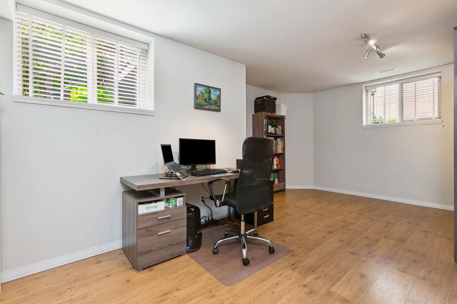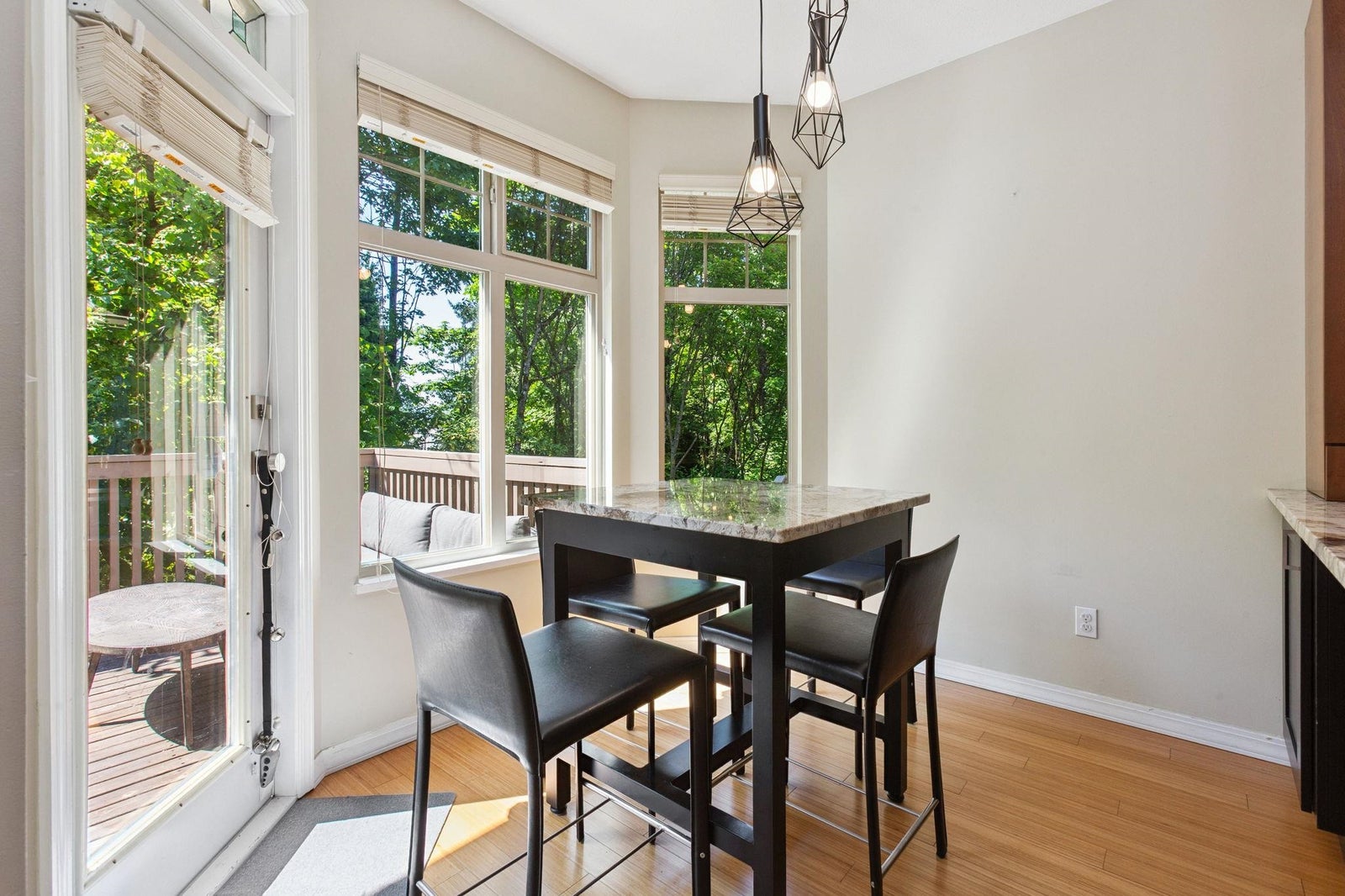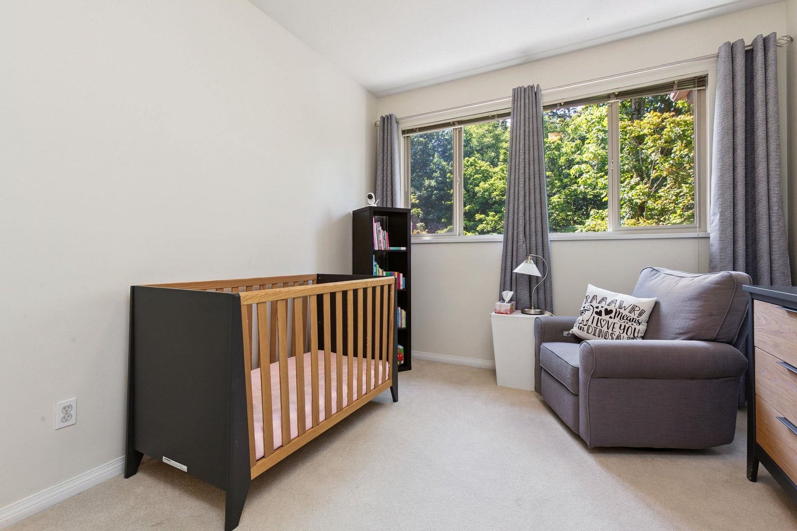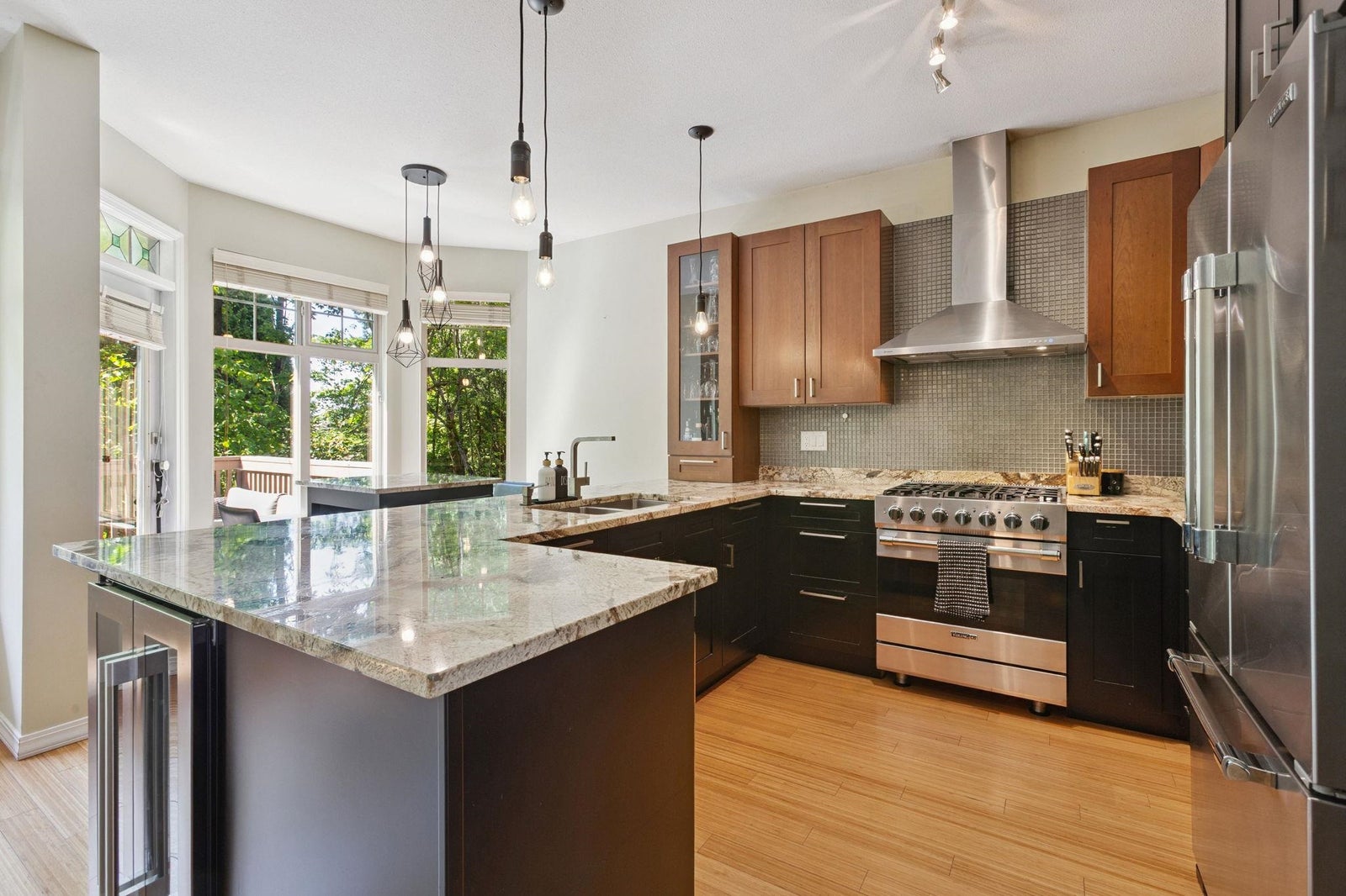 RENOVATED DUPLEX STYLE TOWNHOUSE WITH AIR-CONDITIONING in desirable CRESCENT HEIGHTS. 2,123SF of well appointed, functional living space over 3 spacious levels. The gourmet kitchen features top of the line Viking appliances, granite counters and custom cabinetry, flowing on durable hardwood flooring into the family room, dining room and living room with cozy gas fireplace, bay window seating and overheight 9' ceilings. Off the kitchen is a sunny deck with additional grass for pets! Upstairs are 3 spacious bedrooms including oversized primary with walk in closet and 5 piece ensuite. Below is a fourth bedroom and bathroom - perfect for in-laws or nanny quarters. Appreciate lush treeline views, Hunter Douglas blinds, designer lighting and side-by-side garage! OPEN HOUSE: SEPT 27 & 28 SUN 2-4