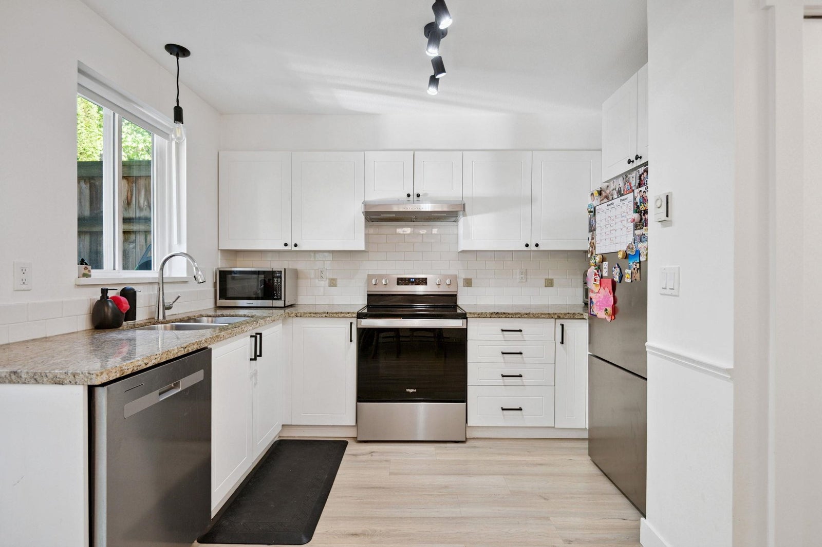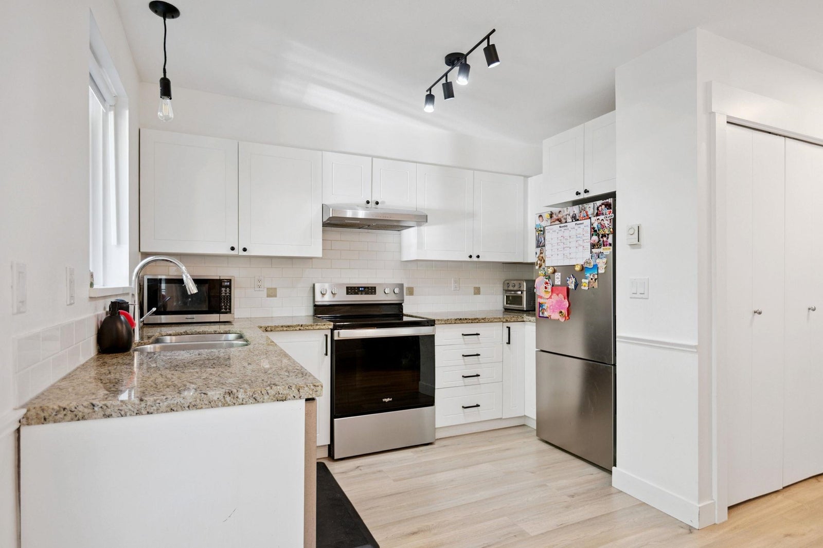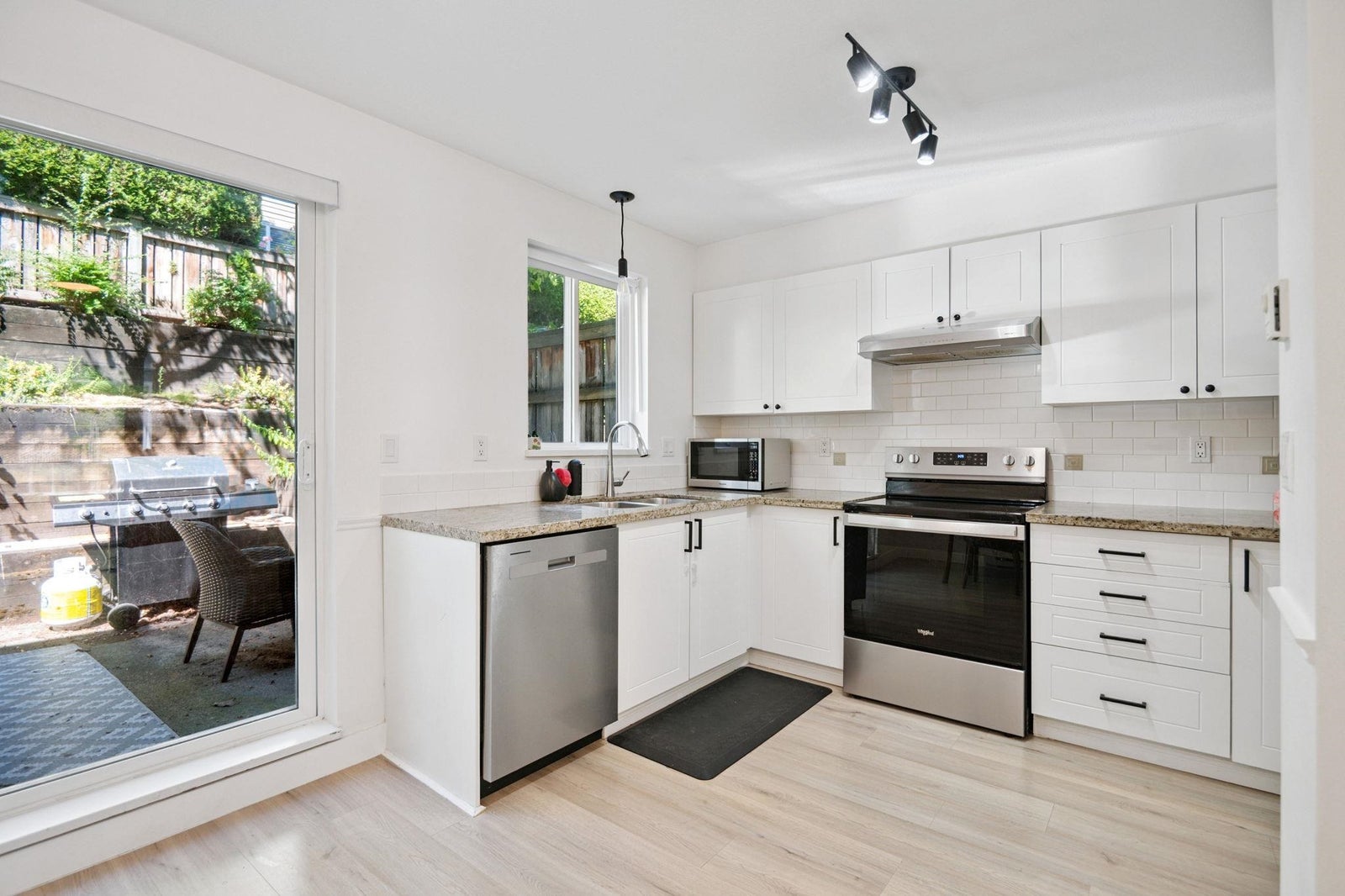 BERKLEY by ADERA HOMES. Welcome home to your peaceful oasis at the end of a safe, tree-lined cul-de-sac. This renovated townhome features an updated kitchen with shaker cabinetry, sleek stainless steel appliances and granite counters, flowing on durable laminate flooring into the dining/living room and private, fenced yard. The living room features a cozy gas fireplace, bay window seating and space for a work from home setup. Upstairs are 3 sizeable bedrooms with 5 piece bathroom and oversized washer/dryer. Below is a recreation room - perfect for an office or additional sleeping quarters. Located a short walk to SkyTrain Station, Highgate Village shopping, grocery stores and parks! Quick drive to Metrotown and Kingsway amenities. ***OPEN HOUSE: SUNDAY, JANUARY 11 2-4PM***