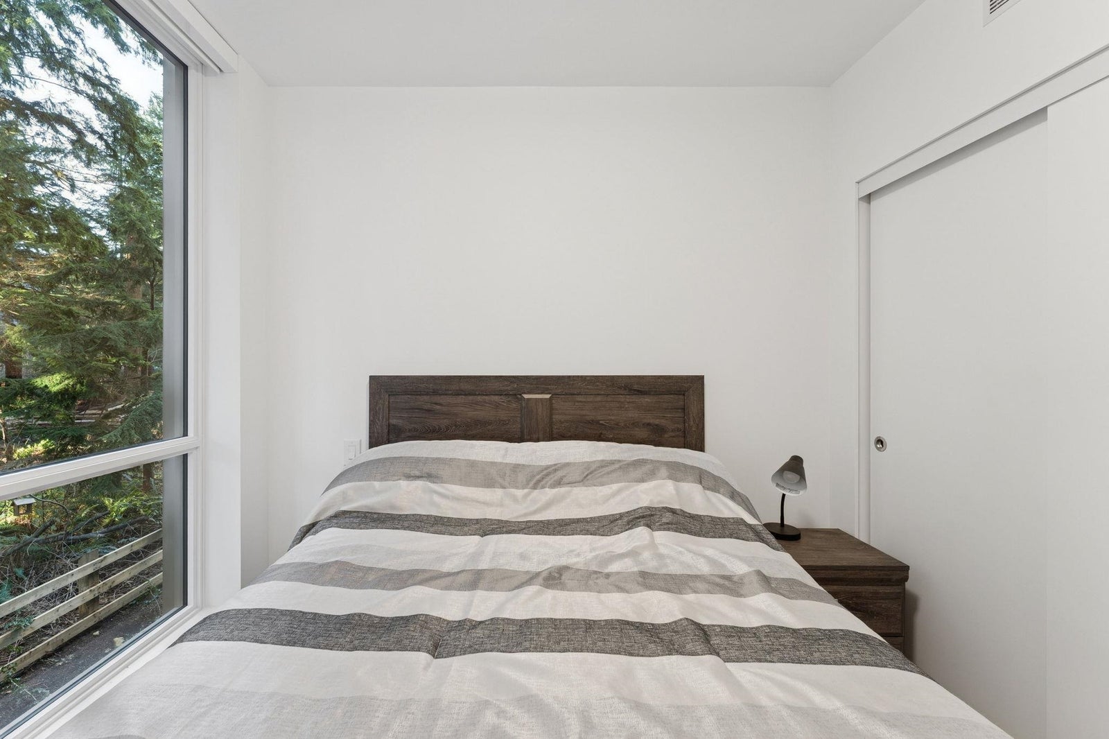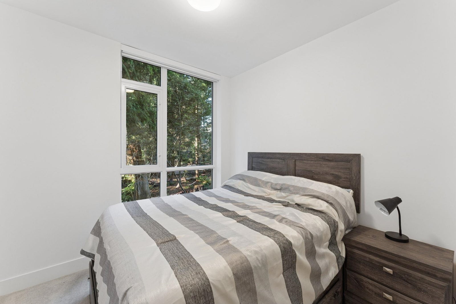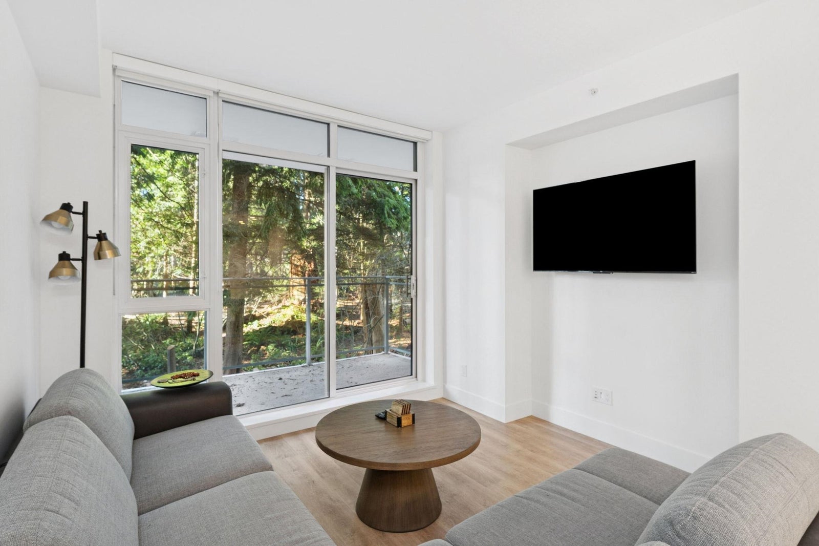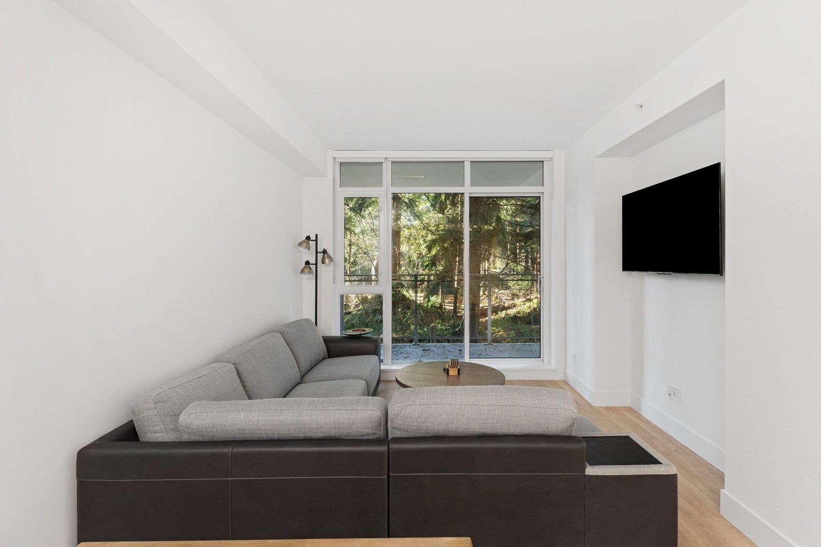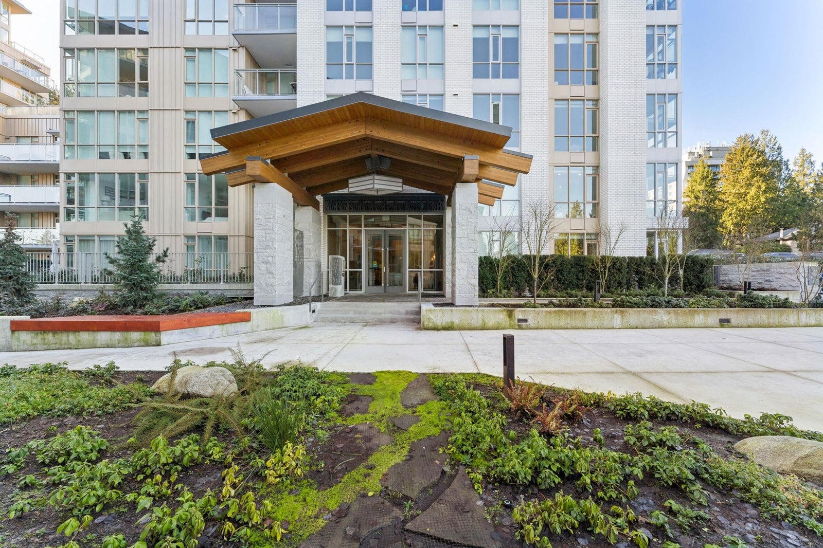 PARKSIDE AT LYNN BY MOSAIC HOMES - Lynn Valley's premier address. This one bedroom + den/flex concrete home features an efficient, open concept floorplan with lush forest views... like an adult treehouse! The kitchen features integrated appliances, quartz counters, ample storage and rich brass hardware, flowing on designer vinyl flooring into the dining/living room and massive covered patio. Appreciate air-conditioning, over-height ceilings and a den/flex space that comfortably accommodates an office. The washroom is a true sanctuary with deep soaker tub, oversized vanity and floor to ceiling tiling. Resort-style amenities include indoor pool, fitness centre, yoga studio and social lounge. All of this, at nature's door... steps to hiking/biking trails and Lynn Valley Centre/Village.