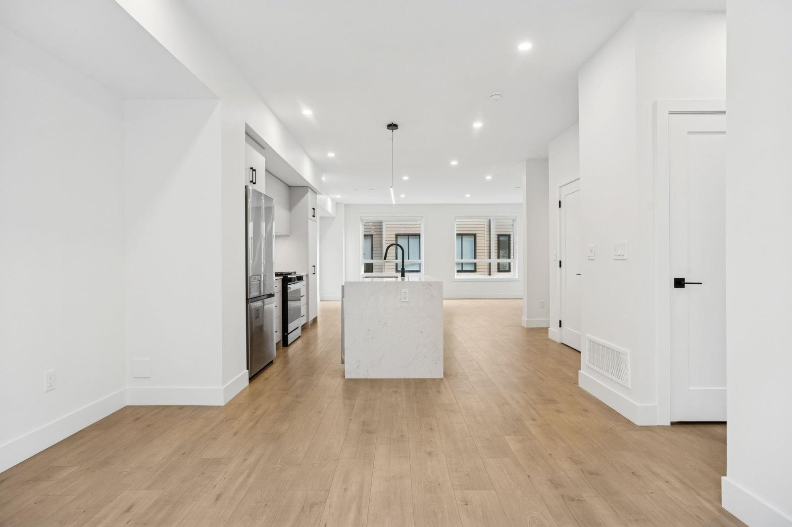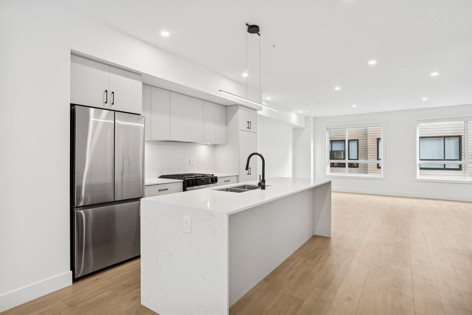BRAND NEW CORNER 4 BEDROOM TOWNHOME WITH ROOFTOP DECK! This townhome features an open concept kitchen with sleek cabinetry, large kitchen island with quartz waterfall countertops, stainless steel appliances including gas range, flowing on durable laminate flooring into the spacious living and dining rooms and opens onto a patio with gas hookup. Appreciate lots of natural light, windows, 9' ceilings, forced air heating/air-conditioning and roller blinds throughout. Above is a primary suite with 4 piece ensuite and walk in closet as well as 2 additional spacious bedrooms and a shared bathroom with double vanity and side by side laundry. Below is an ensuited fourth bedroom with lock off potential. This home features a 663SF rooftop deck and double garage with EV charging!