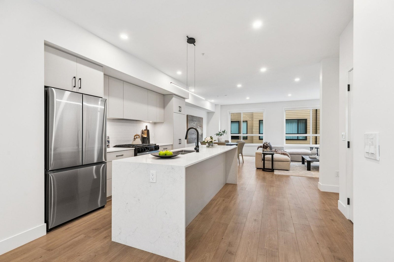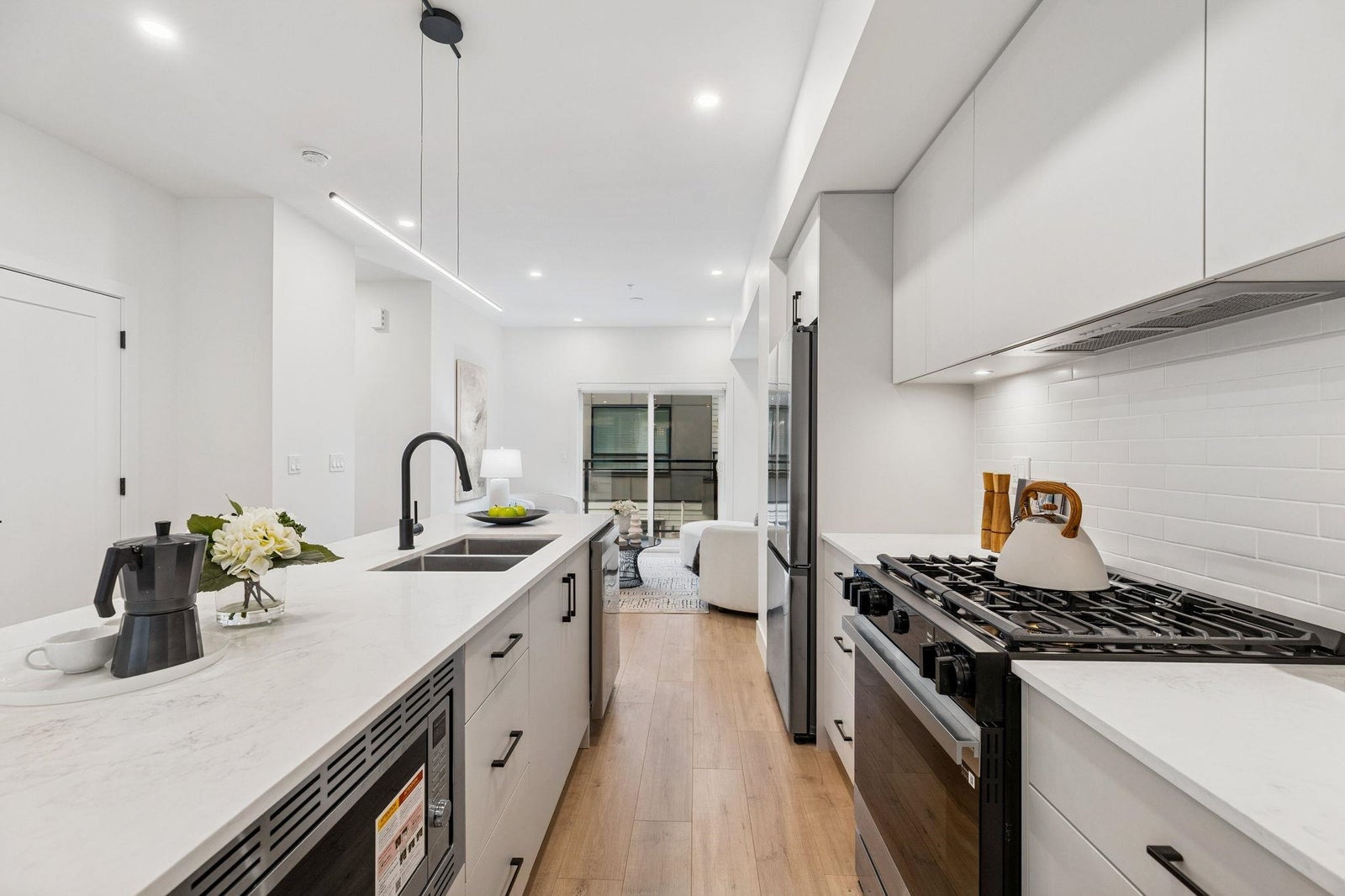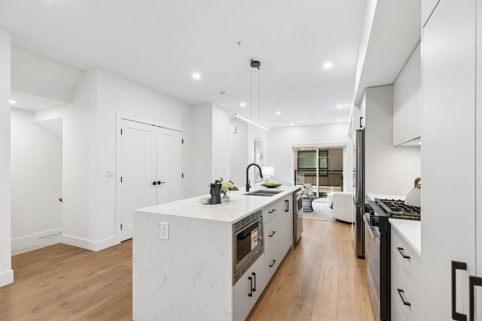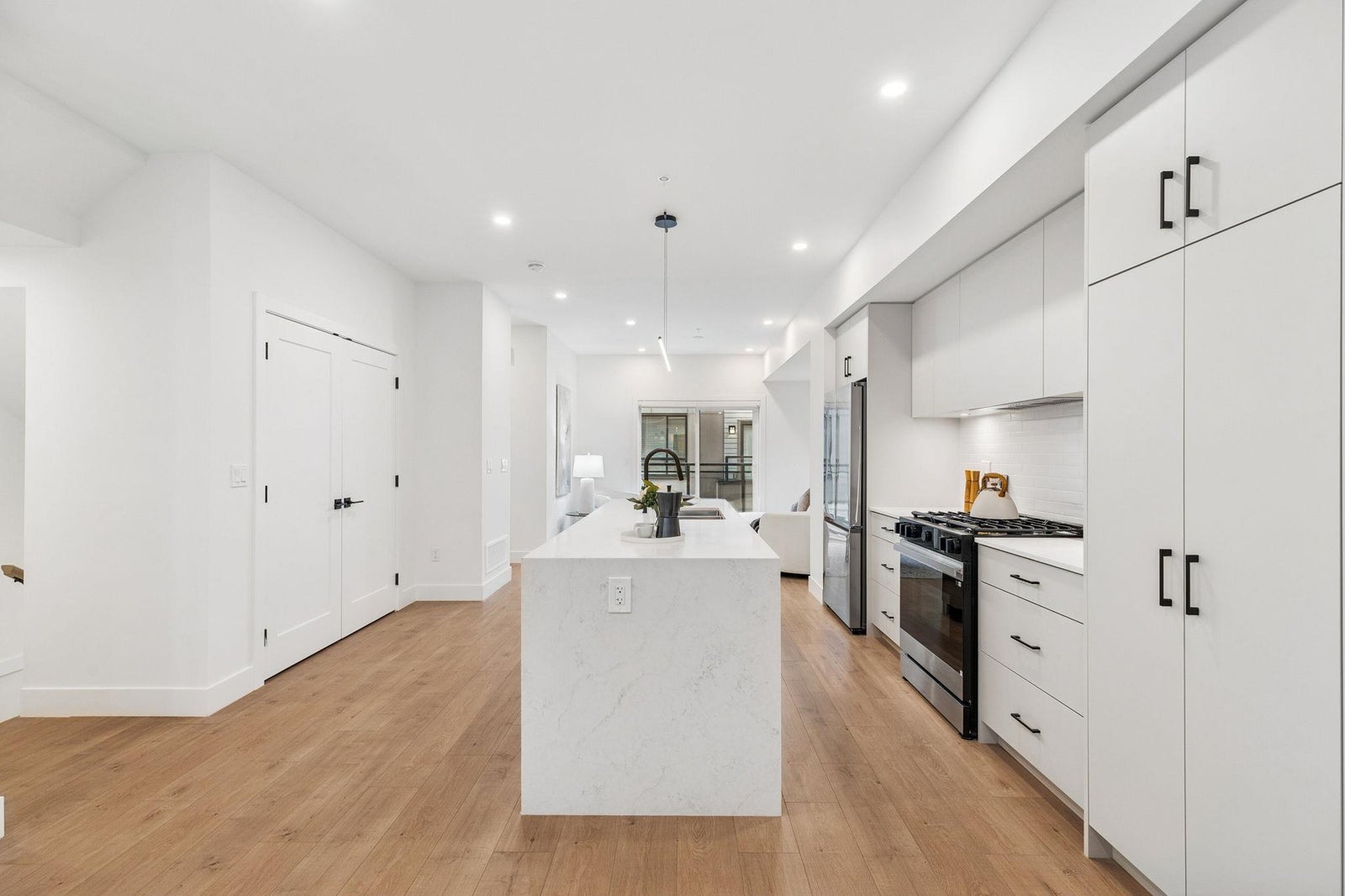 BRAND NEW 4 BEDROOM TOWNHOME WITH ROOFTOP DECK! This townhome features an open concept kitchen with sleek cabinetry, large kitchen island with quartz waterfall countertops, stainless steel appliances including gas range, flowing on durable laminate flooring into the spacious living and dining rooms and opens onto a patio with gas hookup. Appreciate 9' ceilings, forced air heating/air-conditioning and roller blinds throughout. Above is a primary suite with 4 piece ensuite and walk in closet as well as 2 additional spacious bedrooms and a shared bathroom with double vanity and side by side laundry. Below is an ensuited fourth bedroom with lock off potential. This home features a 663SF rooftop deck and double garage with EV charging! ***OPEN HOUSE: SUNDAY FEBRUARY 1 2-4PM***
