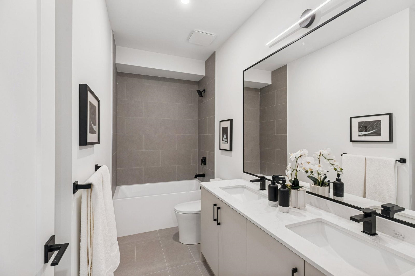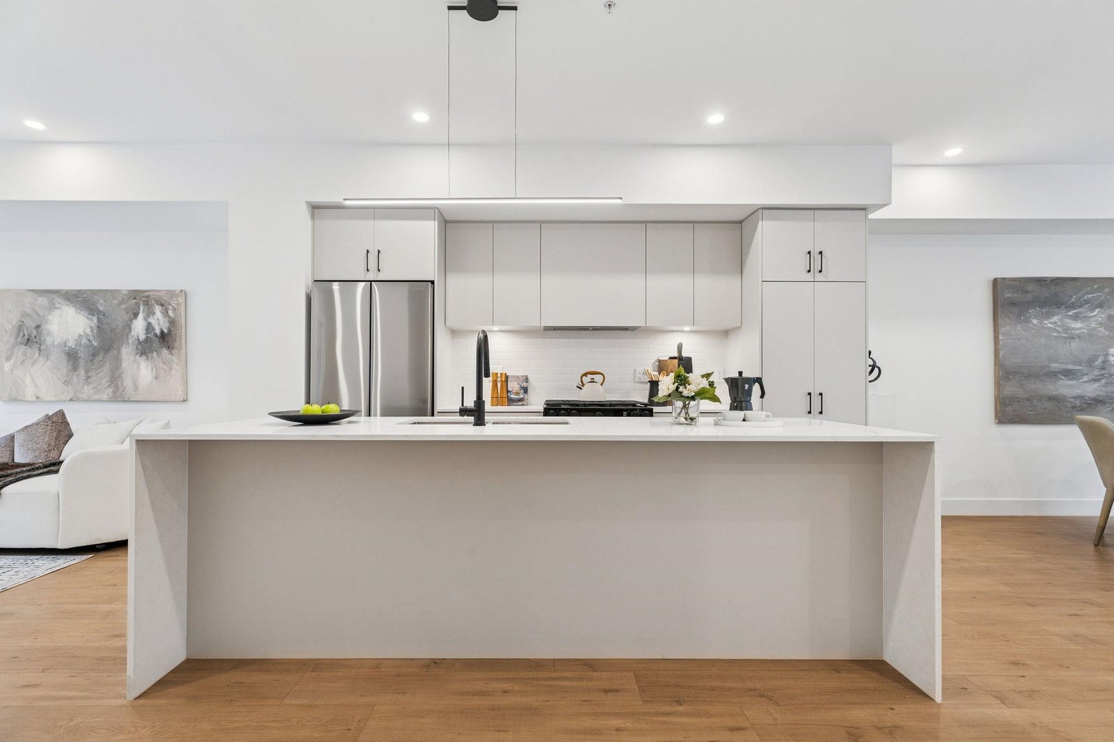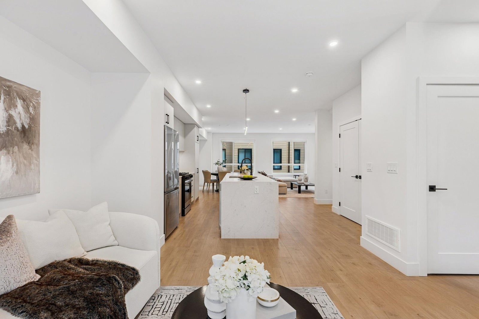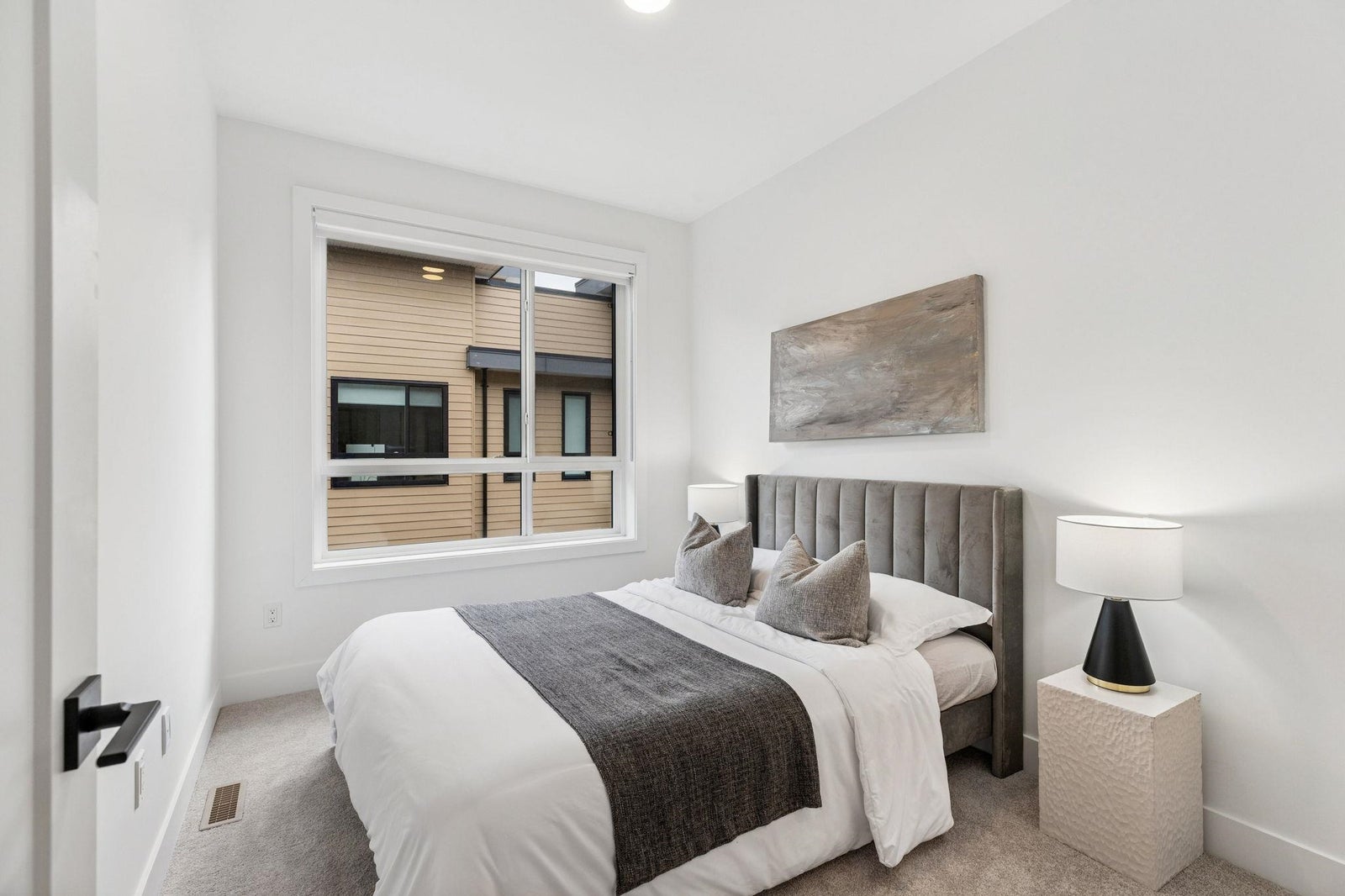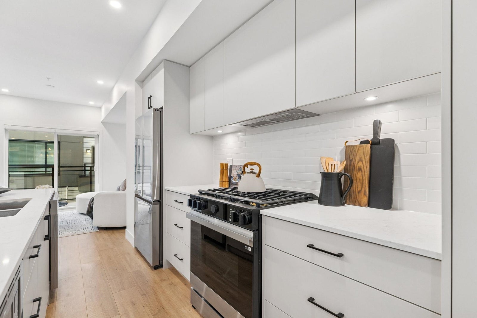 BRAND NEW 4 BEDROOM TOWNHOME WITH ROOFTOP DECK! This townhome features an open concept kitchen with sleek cabinetry, large kitchen island with quartz waterfall countertops, stainless steel appliances including gas range, flowing on durable laminate flooring into the spacious living and dining rooms and opens onto a patio with gas hookup. Appreciate 9' ceilings, forced air heating/air-conditioning and roller blinds throughout. Above is a primary suite with 4 piece ensuite and walk in closet as well as 2 additional spacious bedrooms and a shared bathroom with double vanity and side by side laundry. Below is an ensuited fourth bedroom with lock off potential. This home features a 663SF rooftop deck and double garage with EV charging! ***OPEN HOUSE: SUNDAY FEBRUARY 1 2-4PM***