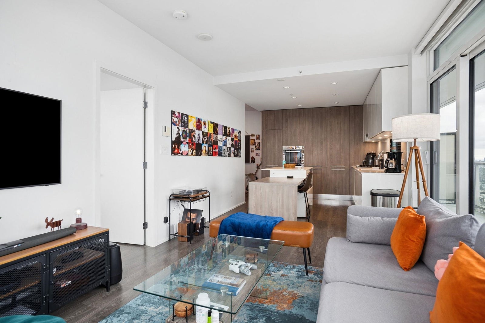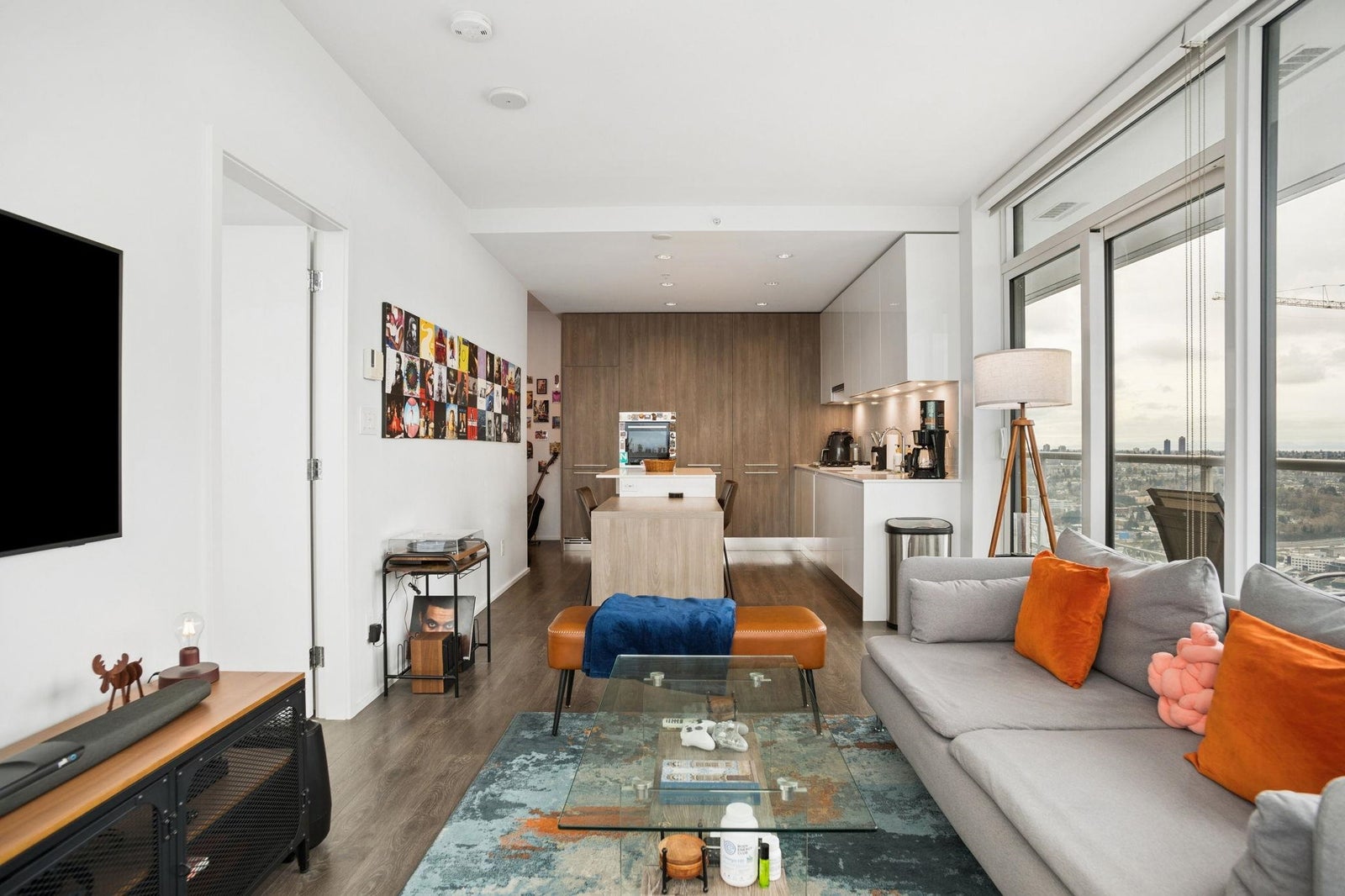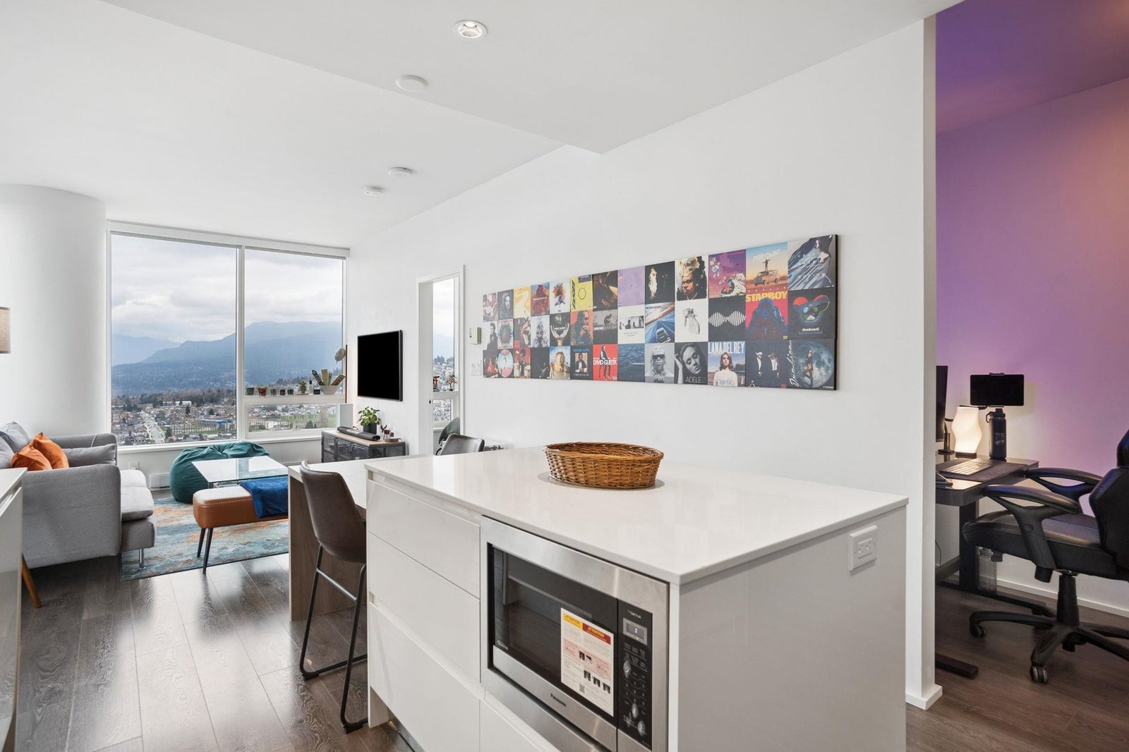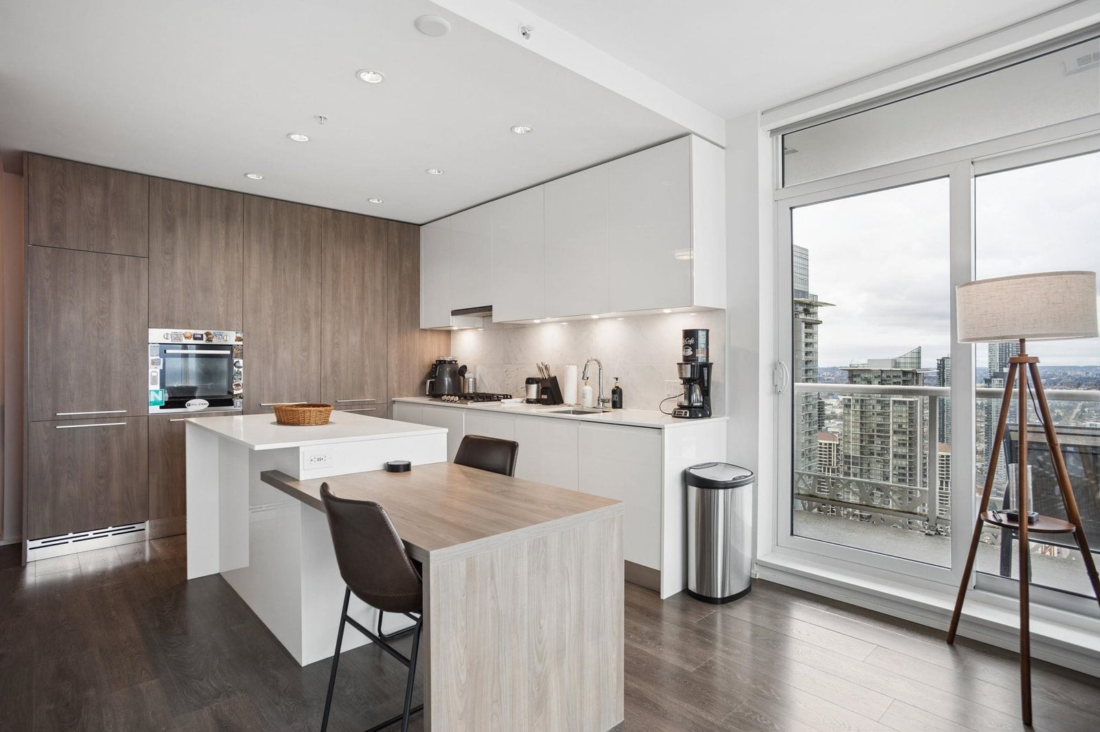 STUNNING NORTHWEST CITY, MOUNTAIN & WATER VIEWS from this corner 2 bedroom + nook, 2 bathroom skyhome. Appreciate an open concept floorplan, centred around a gourmet kitchen with floor to ceiling cabinets, integrated appliances (including gas cooktop) and kitchen island...flowing on laminate flooring into the dining/living rooms punctuated by oversized windows leading onto the oversized patio. The spacious primary suite features a walk-in-closet and is separated from the second bedroom for extra privacy. Appreciate a separate work space/office setup as well. All of this, with the city's best shopping, eateries, entertainment and transit at your doorstep! 1 parking & 1 storage. ***OPEN HOUSE: SAT APRIL 11 & SUN APRIL 12 2-4PM***