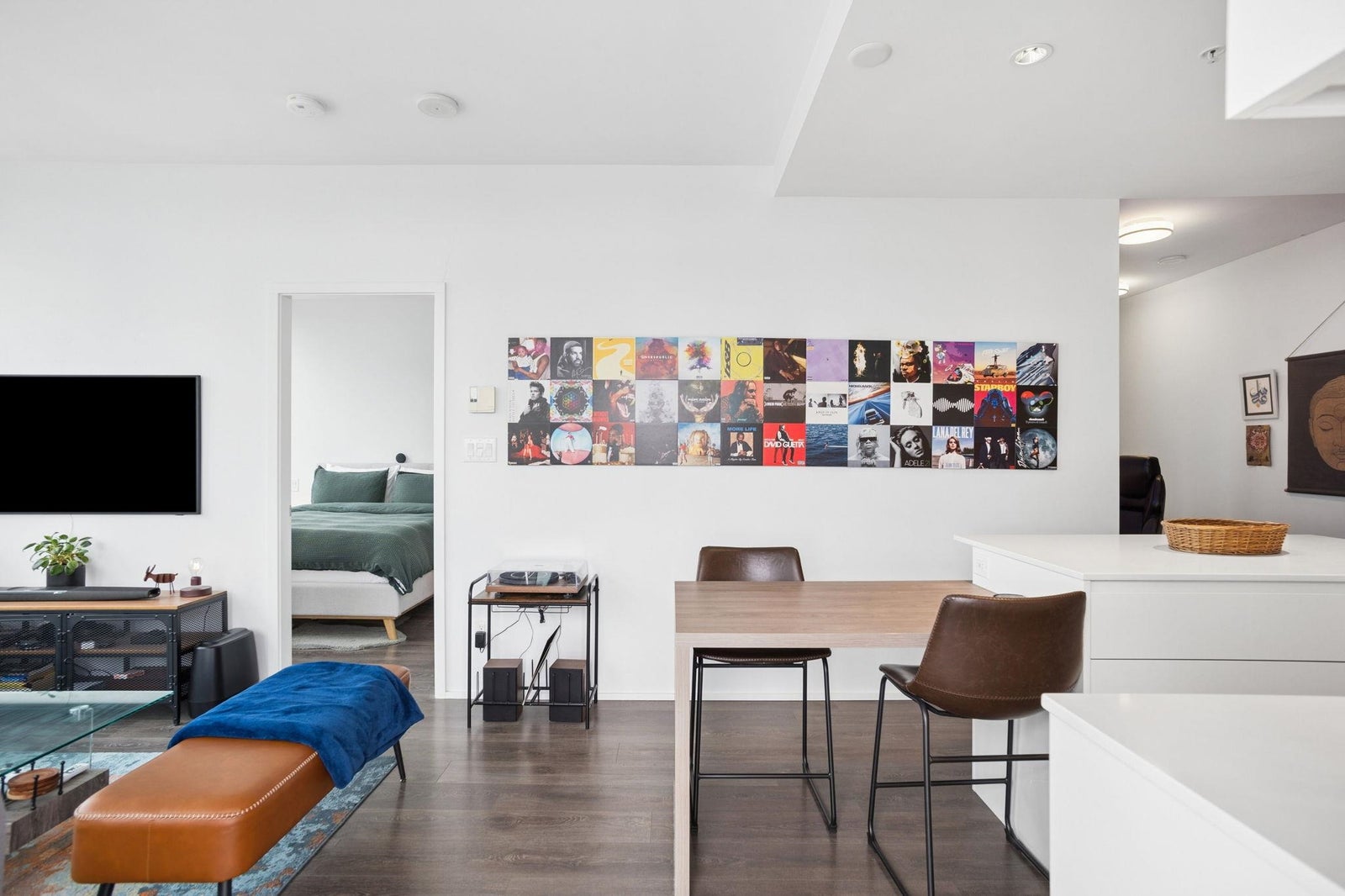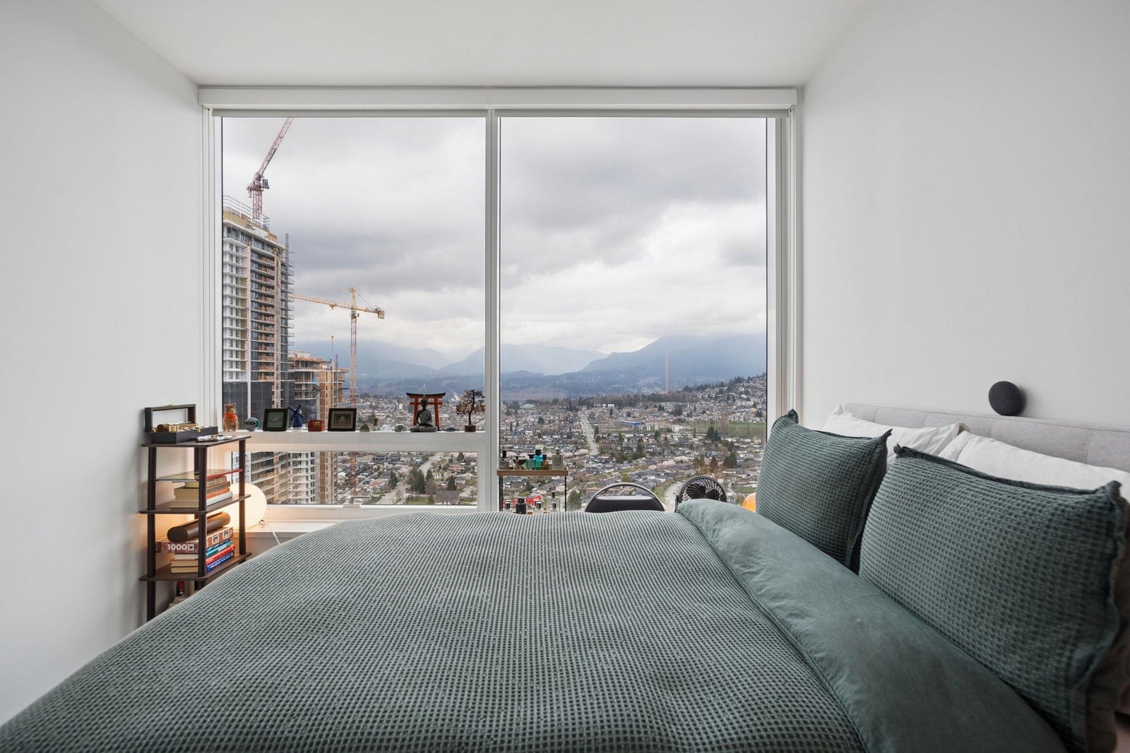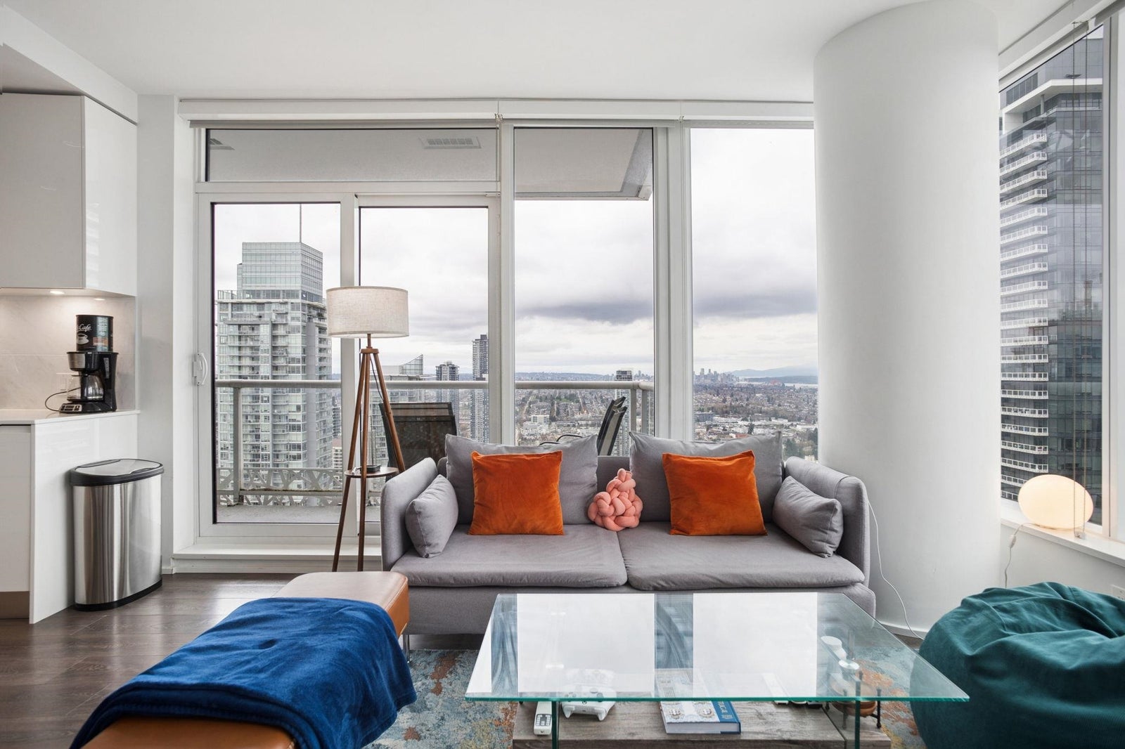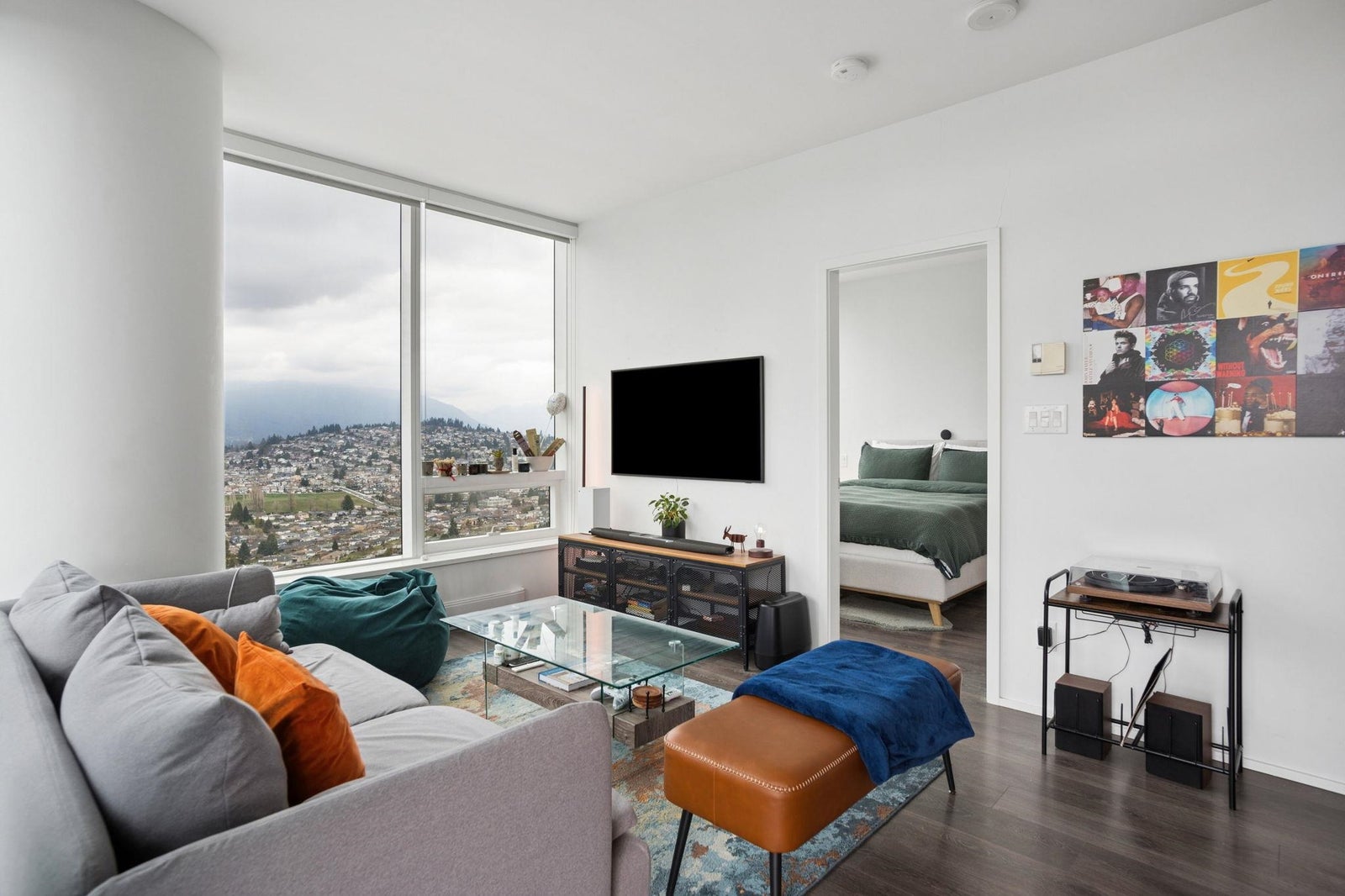 STUNNING NORTHWEST CITY, MOUNTAIN & WATER VIEWS from this corner 2 bedroom + nook, 2 bathroom skyhome. Appreciate an open concept floorplan, centred around a gourmet kitchen with floor to ceiling cabinets, integrated appliances (including gas cooktop) and kitchen island...flowing on laminate flooring into the dining/living rooms punctuated by oversized windows leading onto the oversized patio. The spacious primary suite features a walk-in-closet and is separated from the second bedroom for extra privacy. Appreciate a separate work space/office setup as well. All of this, with the city's best shopping, eateries, entertainment and transit at your doorstep! 1 parking & 1 storage. ***OPEN HOUSE: SAT APRIL 11 & SUN APRIL 12 2-4PM***